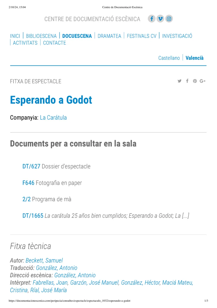 - 1989Peripecia — Esperando a Godot