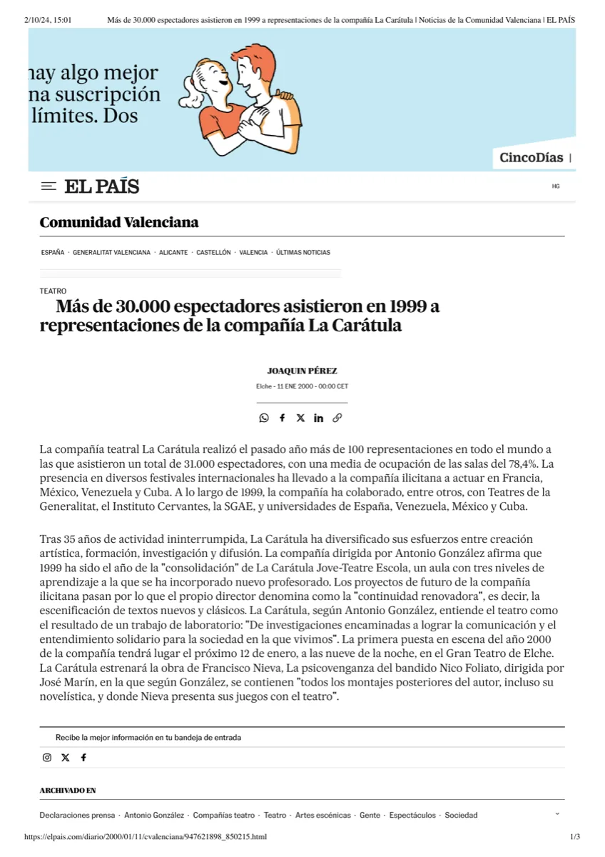 - 1999El País — La Carátula Jove