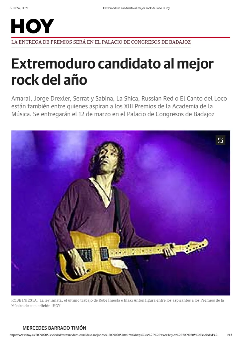 - 2011RTVE — La Shica, Rosendo y Serrat, triunfadores en los XV Premios de la Música