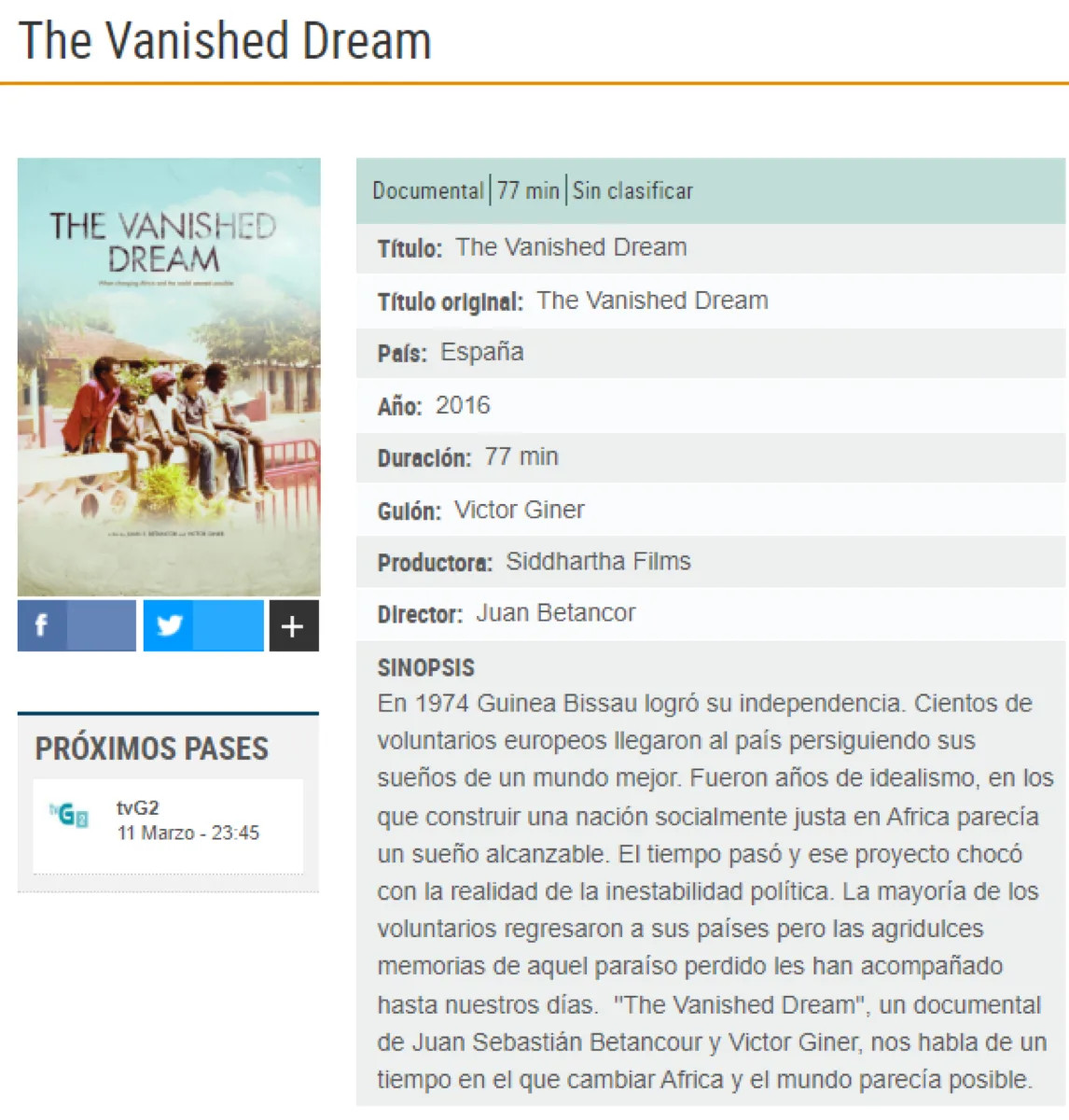 - 2016IMDB — The Vanished Dream