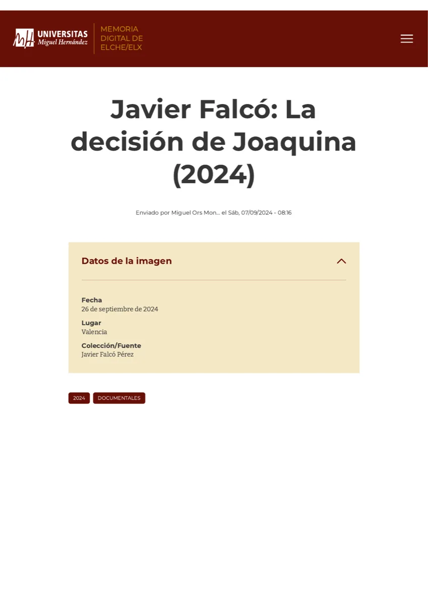 - 2024elche.me — Javier Falcó y La decisión de Joaquina